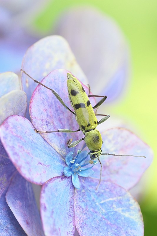 | 3年位前によく行く公園のアジサイの茎でハスオビヒゲナガカミキリが撮れると言う情報を得て探しましたが見つけられず、周辺の公園、緑地まで足を伸ばしても見つられなくて3年が経った。今年も探しに行きましたが見つからなかったので、フタオビミドリトラを探しに地元の森に移動。去年フタオビミドリトラを探しながら気になっていたアジサイの茎にある昆虫の羽脱孔らしき痕跡。もしかしてと思いながらじぃ〜っと探していると、いましたハスオビヒゲナガカミキリ(≧∀≦)今年撮れなかったら最初に見つけた群馬県まで行こうかなと一瞬思いましたが、ヤマビルがもれなく付いてくる場所にできれば行きたくなっかたので、地元で見つけられたことが何より嬉しい。 | ||