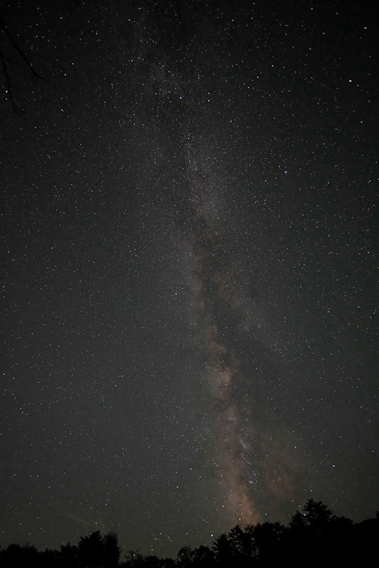 | 今年3度目の星景写真挑戦で初めて天の川が撮れた。半月が出ていたので完全に沈んだ午後10過ぎから撮影開始。ピント合わせに一苦労しながら撮った写真を確認し条件を決めていく。数枚撮って写真を確認すると徐々に写りが変になって来ているので、まさかと思いレンズを見ると結露で真っ白。そう、だだっ広い草原で撮っていたので結構寒いのだ。レンズを拭いてピントを合わせシャッターを切る。15秒位でまた結露してしまう。仕方ないので折り畳みのレフ板をうちわ代わりにしてレンズを煽りながらの撮影。色々設定を変えながら撮ってまあまあいい感じに撮れました。 | ||